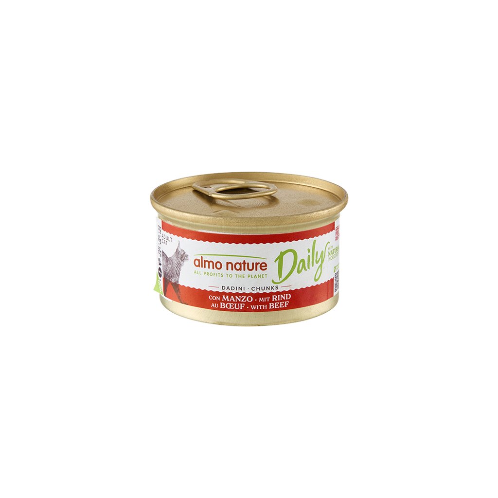 Almo Nature Daily Chunks with Beef 85 g – kompletná konzerva pre mačky 1+ (kúsky v šťave, bez lepku, bez obilnín)