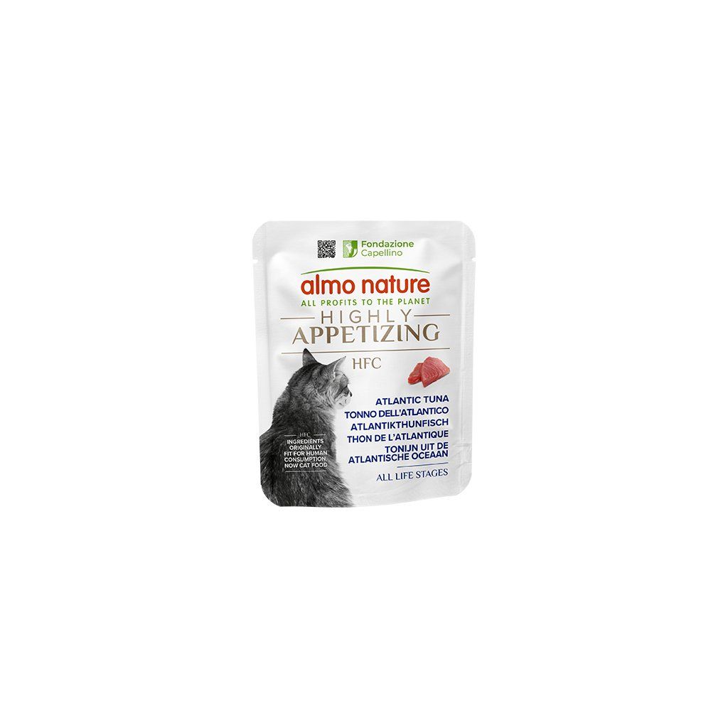 Almo Nature HFC Highly Appetizing Atlantic Tuna je doplnkové krmivo pre mačky s mimoriadne vysokým podielom tuniaka z Atlantického oceánu (90 %), určené na zvýšenie chutnosti jedla a podporu príjmu potravy. Vhodné pre mačiatka 2–12 mesiacov, dospelé mačky 1+ rok aj seniorov 7+ rokov – ideálne ako topper ku granulám alebo chutná rybia porcia.
