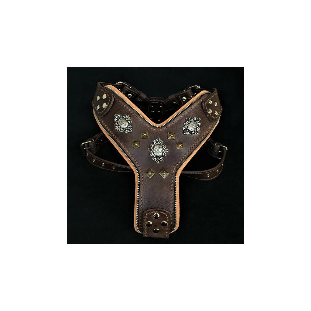 Postroj Aztec sa vyznačuje kombináciou dvoch modelov nitov v dvoch farbách pokovovania, starostriebornej a starožitnej mosadze, ako aj ozdobou zipsu. Základnou vrstvou tohto postroja je vysokokvalitná koža. Vnútorná vrstva je zo 100 % pravej kože, ktorá je veľmi odolná voči roztrhnutiu a opotrebovaniu. 108,55 € Dostupné skladom