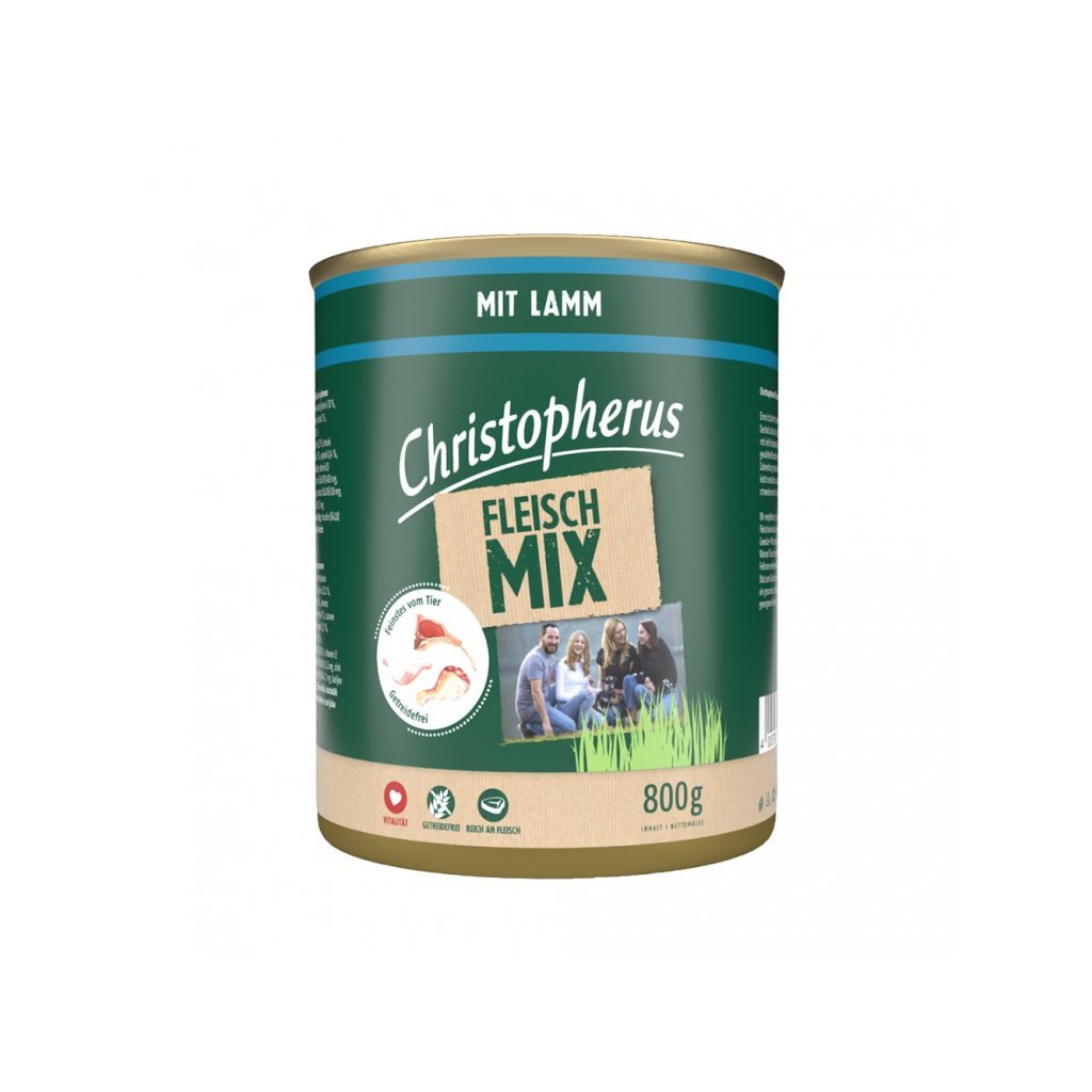Christopherus Nassfutter Fleischmix – Adult – Jahňacie & hydina je kompletné mokré krmivo (konzerva) pre dospelých psov, vyrobené s vysokým podielom mäsa a vnútorností (70 %) z jahňaťa, kurčaťa a moriaka. Vďaka šetrnému spracovaniu je krmivo ľahko stráviteľné, chutné a vhodné na každodenné kŕmenie – samostatne alebo v kombinácii so suchým krmivom či vločkami.