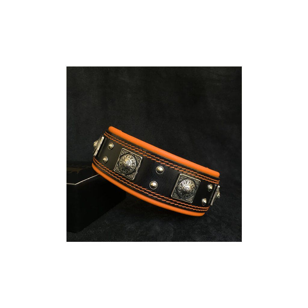 Popis produktu Základnou vrstvou tohto obojku je 4 mm hrubá opasková koža najvyššej kvality. Je veľmi pevný a odolný. Vnútornú vrstvu tvorí naša patentovaná mäkká koža a ortopedická penová poduška. Je to tiež 100% pravá koža Nappa. Tento obojok má celkovú šírku 6,3 cm, vrátane mäkkej podušky. Pracka a D-krúžok merajú 50 mm. Všetky kovové časti sú poniklované, vyrobené z oceľového drôtu, špeciálne na tento účel. Veľkostná tabuľka: M -Obvod krku 42,5 - 52,5 cm L - Obvod krku 50- 60 cm XL - Obvod krku 57,5- 67,5 cm XXL - Obvod krku 65 - 75 cm