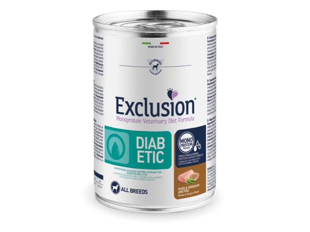 Exclusion konzerva pre psa Diabetic Pork&Sorghum and Pea