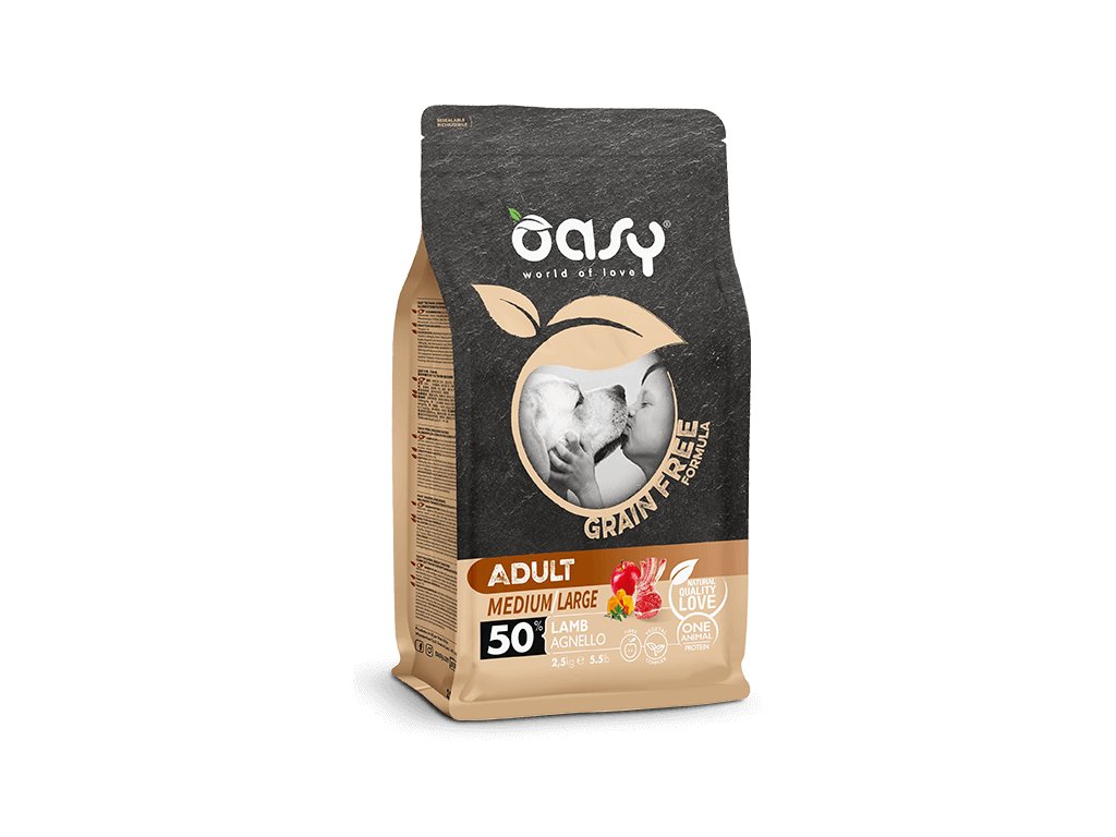 Oasy Grain Free Adult Medium/Large Lamb – bezobilninové granule pre dospelé stredné a veľké plemená (single protein – jahňacina)