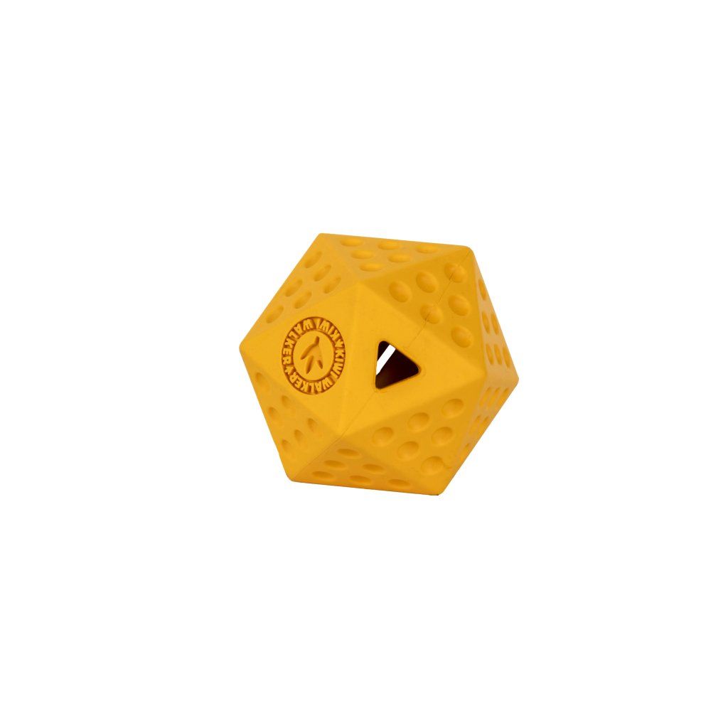 Nepravidelný tvar inšpirovaný ikosaedrom spôsobuje nepredvídateľný pohyb, ktorý zvyšuje pozornosť psa a udržiava ho dlhšie zabaveného.