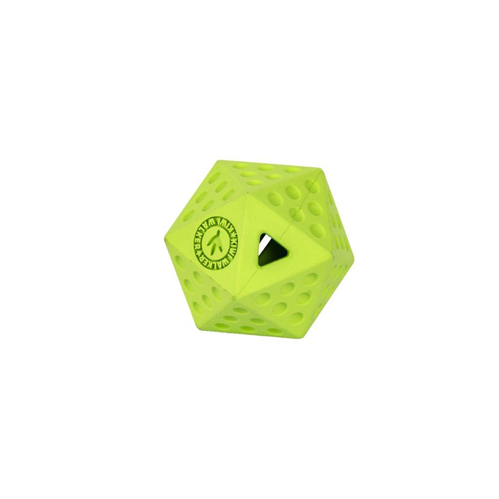 Nepravidelný tvar inšpirovaný ikosaedrom spôsobuje nepredvídateľný pohyb, ktorý zvyšuje pozornosť psa a udržiava ho dlhšie zabaveného.
