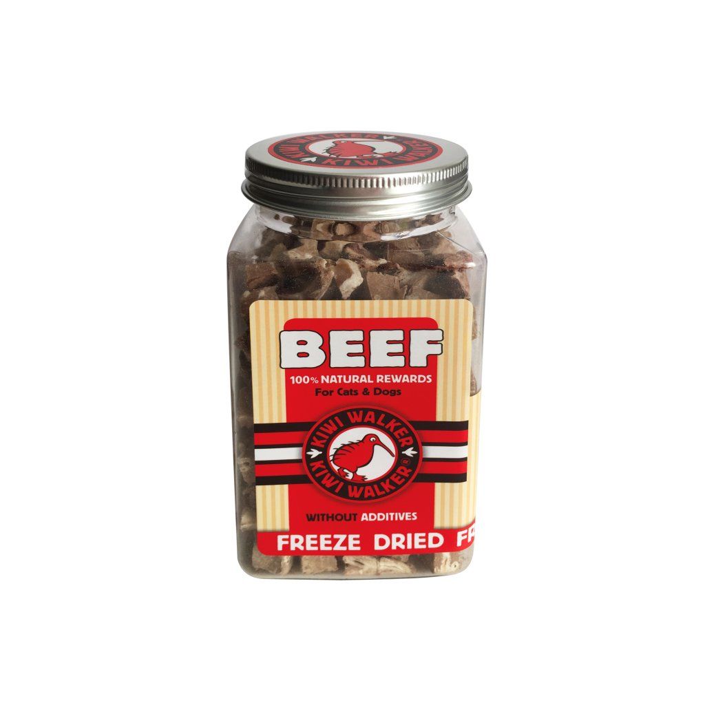 Doprajte svojmu psovi alebo mačke chutnú mäsovú odmenu bez zbytočných prísad. Objednajte mrazom sušené hovädzie Kiwi Walker a majte vždy poruke praktickú maškrtu na tréning aj každodenné odmeňovanie.