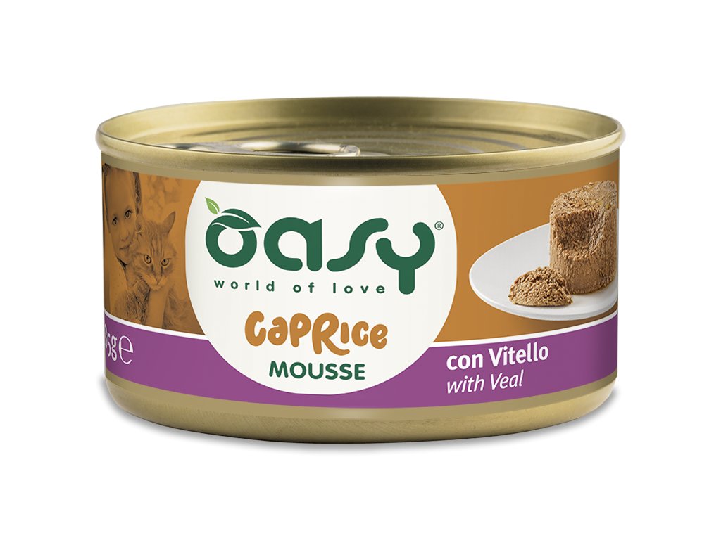 Oasy Mousse with Veal je výživný mousse s teľacím mäsom, určený pre dospelé mačky. Poskytuje kvalitnú stravu, podporuje zdravie, vitalitu a šťavnatú chuť mačiek.