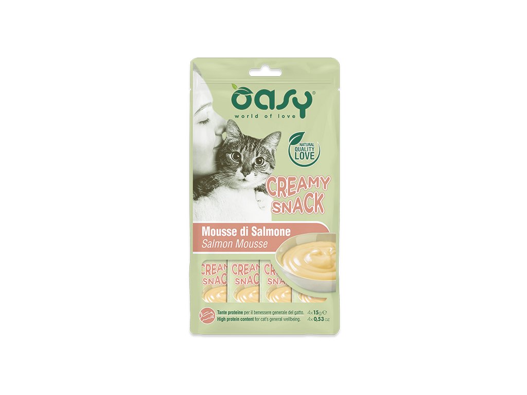 Oasy Creamy Snack Salmon sú lahodné a krémové maškrty určené pre mačky všetkých vekových kategórií. Poskytujú autentickú chuť lososa a slúžia ako ideálna odmena, ktorá podporuje vitalitu a zdravie vášho miláčika.