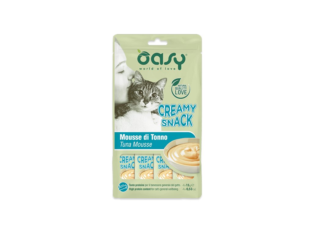 Oasy Creamy Snack Tuna sú lahodné krémové maškrty určené pre mačky všetkých vekových kategórií. Poskytujú autentickú chuť tuniaka a slúžia ako ideálna odmena, ktorá podporuje vitalitu, zdravie a chuť k jedlu vášho mačacieho miláčika.