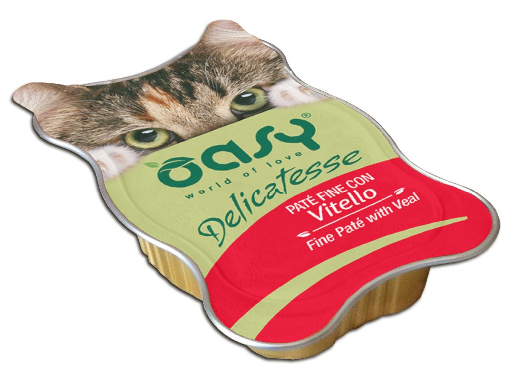 Doprajte svojej mačke lahodnú a výživnú Oasy Delicatesse Fine Paté s teľacím. Prémiová chuť a vyvážená receptúra pre každodenné kŕmenie.