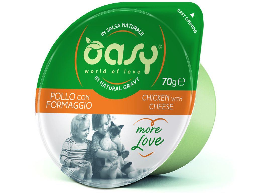 Oasy MoreLove Chicken with Cheese Cup – krémová konzerva pre mačky