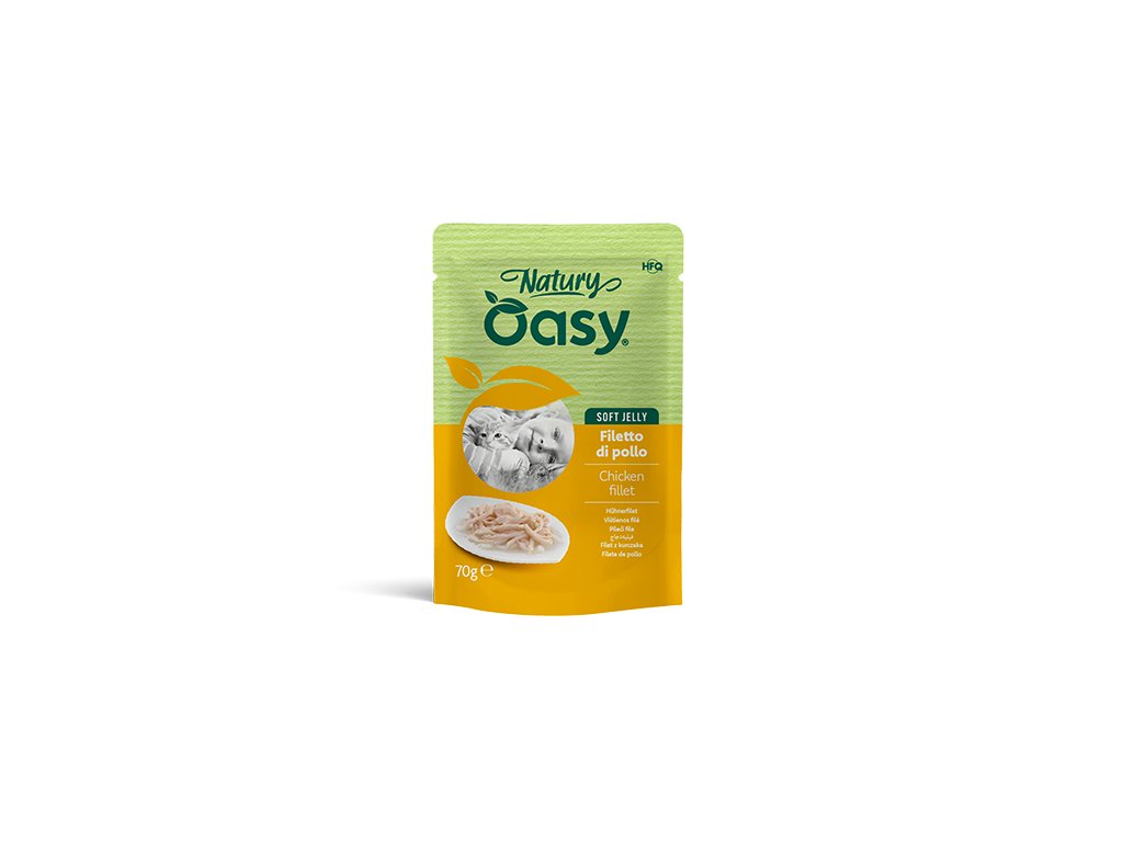 Oasy Natury Soft Jelly Chicken je kompletné mokré krmivo pre dospelé mačky, pripravené z kvalitného kuracieho mäsa v jemnej želé. Poskytuje vyváženú výživu, podporuje vitalitu a zaručuje vynikajúcu chuť, ktorú si vaša mačka zamiluje.