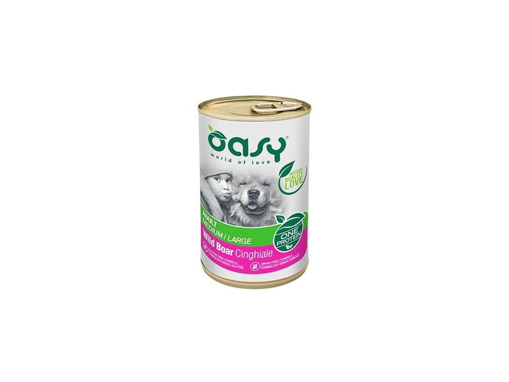Oasy One Protein Adult Wild Boar Medium & Large je kompletné vlhké krmivo s kvalitným mäsom z diviny, určené pre dospelé psy stredných a veľkých plemien. Podporuje zdravé kĺby, svaly a lesklú srsť.