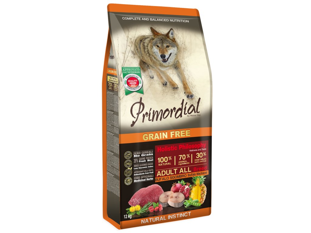 Primordial GF Adult Buffalo & Mackerel je holistické, bezobilné krmivo pre dospelých psov všetkých plemien, bohaté na proteíny z byvolieho mäsa a makrely, ktoré podporuje zdravie a vitalitu.