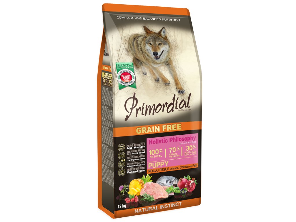 Primordial GF Puppy Chicken & Sea Fish je bezobilné holistické krmivo pre šteniatka všetkých plemien. Obsahuje kvalitné kuracie mäso a morské ryby, podporuje zdravý rast, vývoj kostí a svalov, trávenie a imunitu.